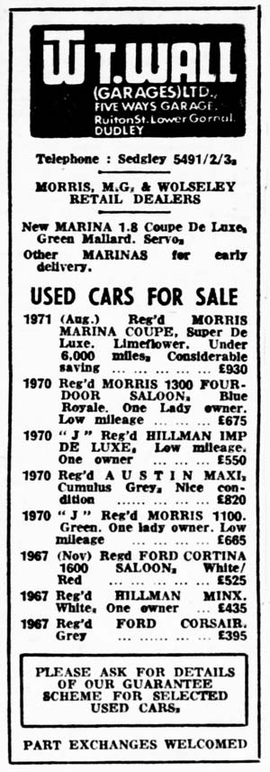 The T. Wall dealership in Lower Gornal focused on the sale of both new and used BMC 'Morris'